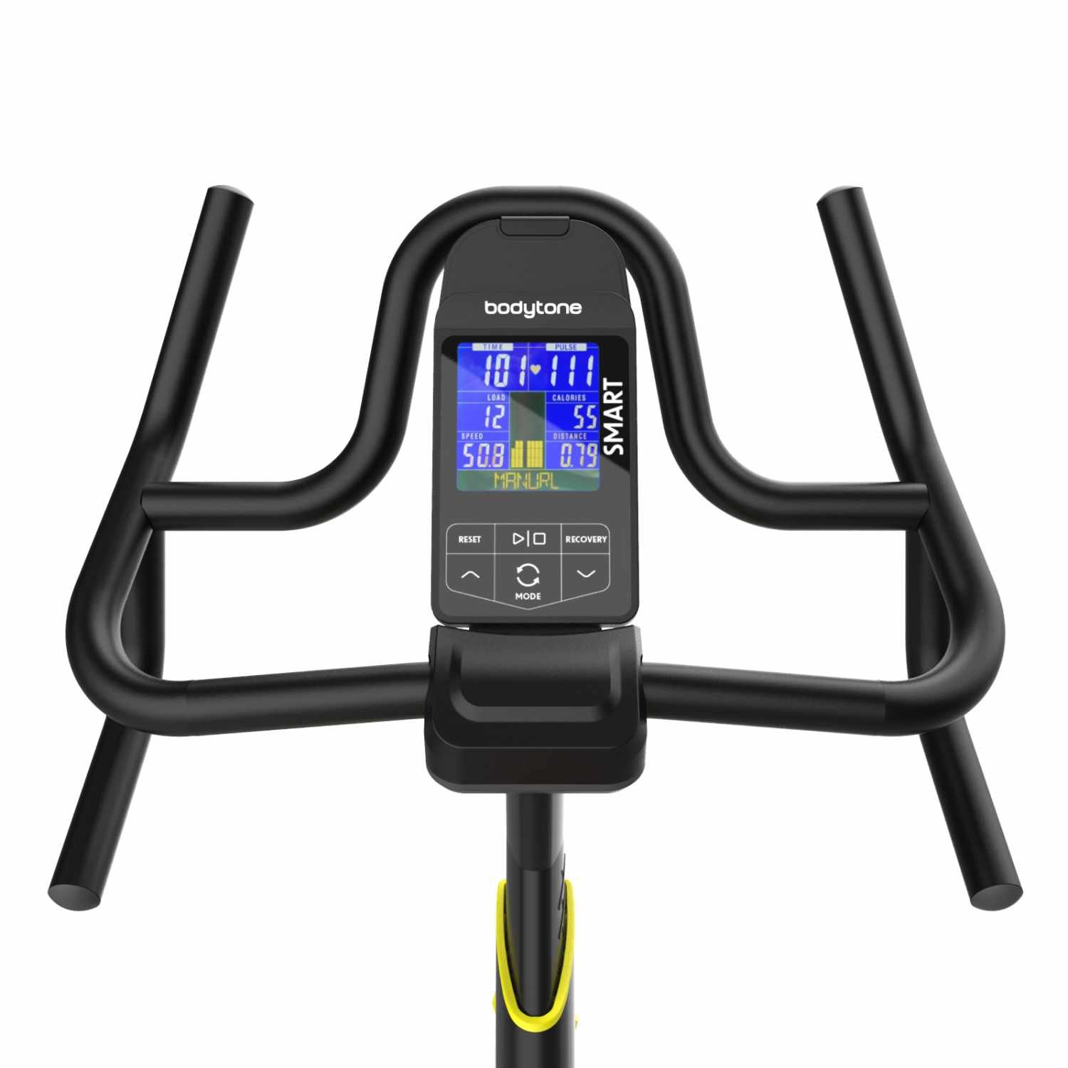 Un vélo de spinning avec Smart technologie qui permet la connexion et l’interaction avec des applications telles que Volava, Bkool, Kinomap, Onelap, Zwift ou MyBodytone. Il dispose d’un frein électromagnétique, de 400 watts et d’un volant d’inertie de 18 kg. Son siège pivotant est confortable et réglable en profondeur et en hauteur.