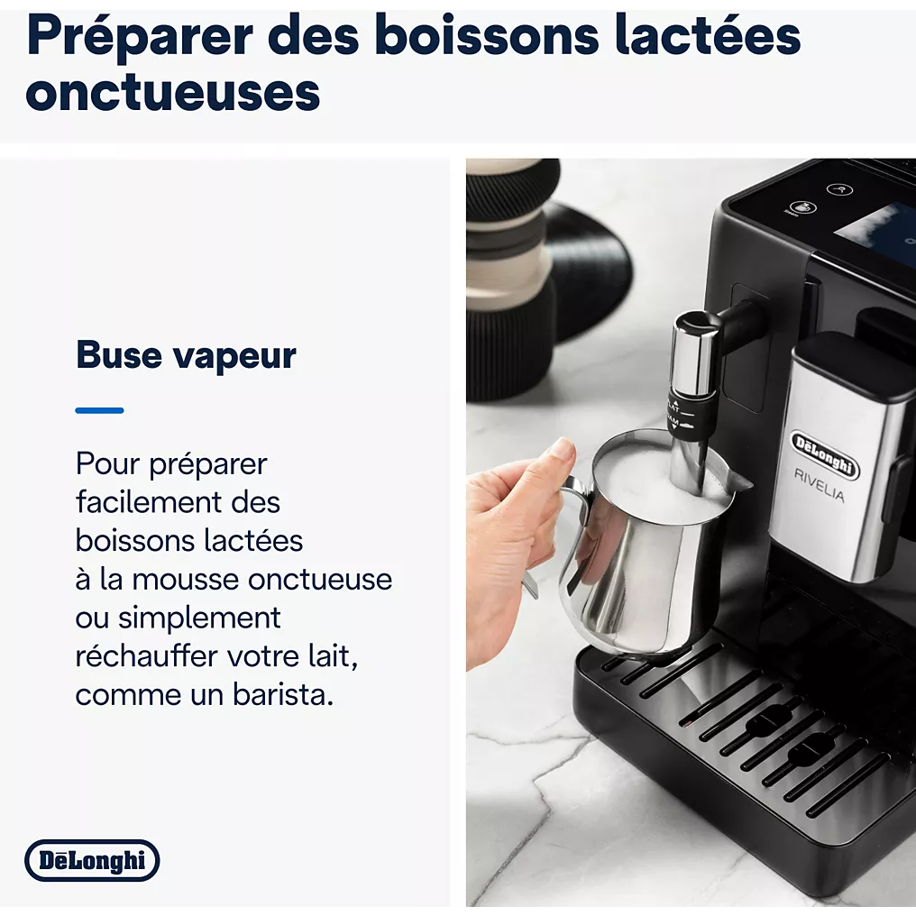 - Système de boissons lactées : buse vapeur intégrée pour une préparation manuelle