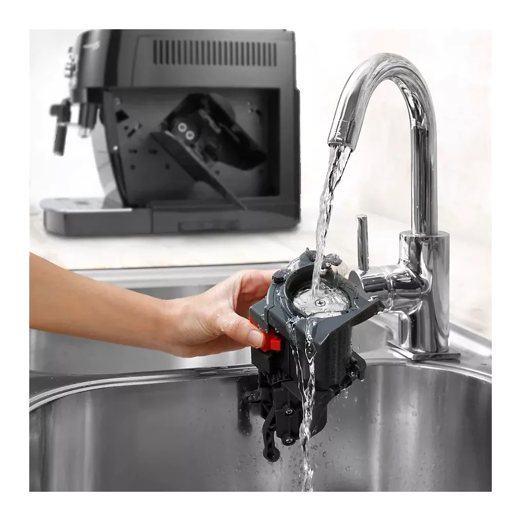 - Nettoyage du groupe d’extractionoui, il est recommandé de nettoyer le groupe d’extraction une fois par semaine pour éviter que les résidus de café mouillé n’altèrent le goût : rincez-le à l’eau tiède si il est extractible, ou utilisez des pastilles détergentes dans la trappe à café moulu s’il ne l’est pas.