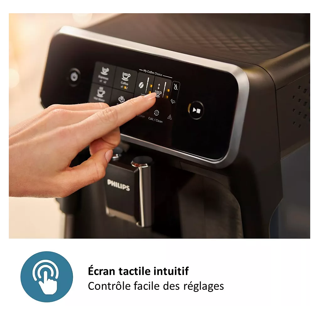 L’Expresso Broyeur PHILIPS EP1220/00 Noir Mat Série 1200 est une machine pensée pour ceux qui souhaitent profiter d’un café fraîchement moulu chaque jour, sans complication et avec une utilisation intuitive. Conçu pour offrir un espresso riche en arômes, un café long ou une boisson lactée simple à préparer, ce modèle se distingue par sa facilité d’accès, son format compact et sa fiabilité.