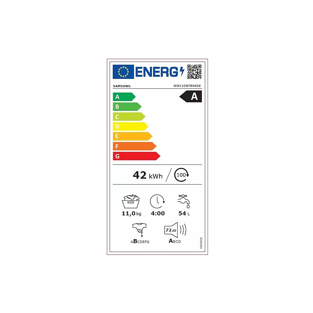 Le WW11DB7B94GE offre une capacité généreuse, capable de traiter de grandes quantités de linge en un seul cycle. Cette dimension en fait un appareil idéal pour les familles nombreuses, les foyers avec enfants, ou pour ceux qui souhaitent réduire la fréquence des lessives.