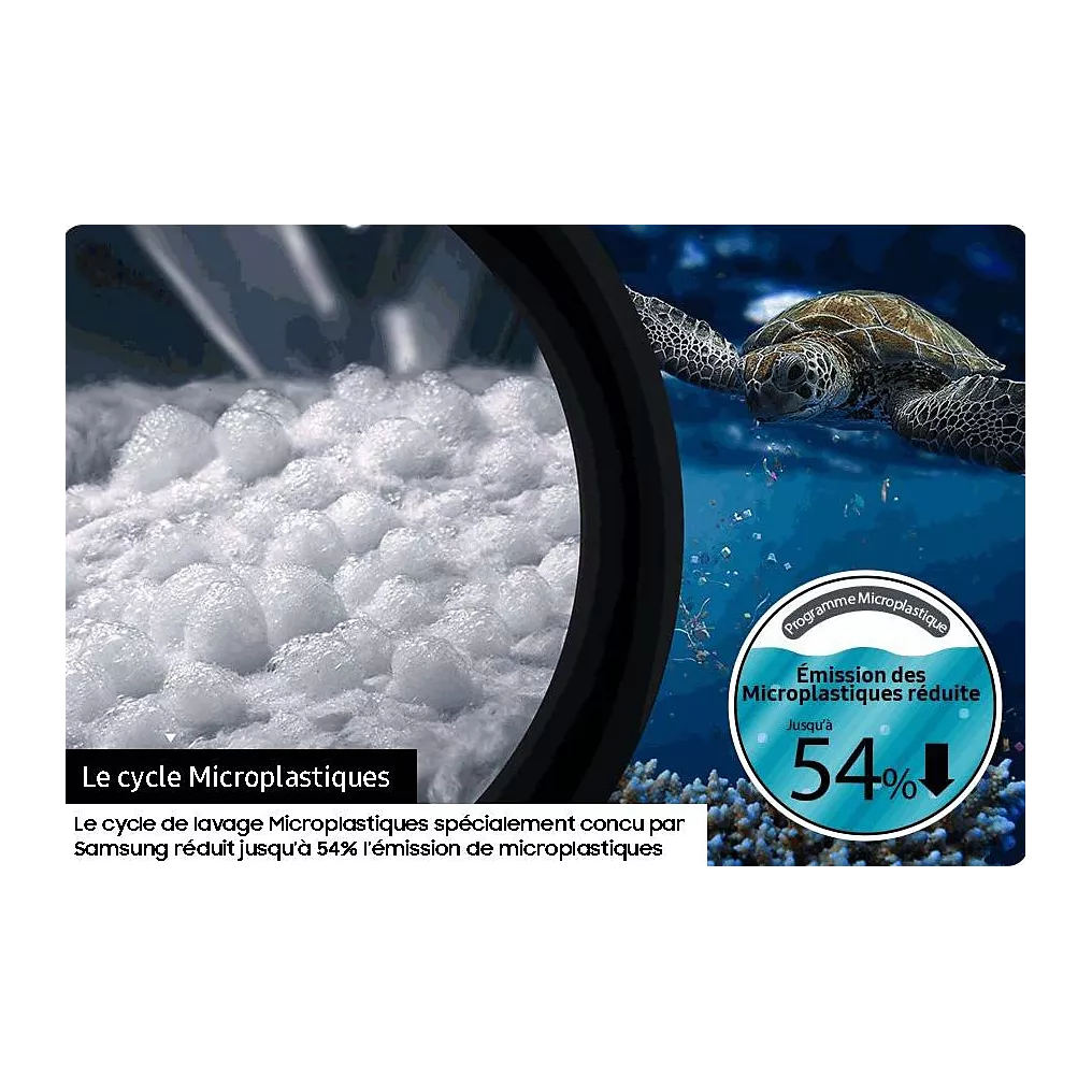 - Microplastiquescycle de lavage conçu pour réduire jusqu’à 54 % l’émission de microplastiques.