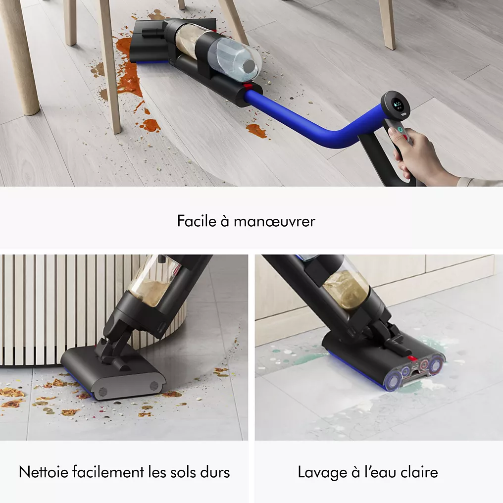 Ce système permet de gagner un temps considérable, en évitant le va-et-vient entre balai, serpillière et aspirateur. Les foyers avec enfants ou animaux domestiques bénéficient particulièrement de cette technologie, car elle garantit un nettoyage rapide et hygiénique, même après des tâches difficiles comme les miettes, la boue ou les poils.
