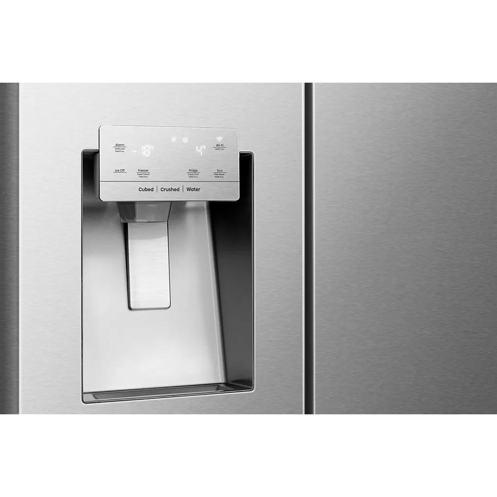 Le distributeur intégré d’eau fraîche, de glaçons et de glace pilée est accessible sans ouvrir la porte, offrant un confort considérable au quotidien. L’alarme de porte ouverte et le contrôle électronique de la température garantissent une conservation optimale et sécurisée de vos aliments. Le moteur Inverter assure un fonctionnement silencieux et une consommation d’énergie maîtrisée.