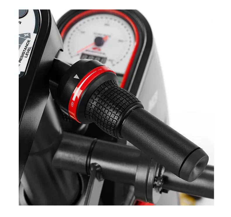 Compteur semblable à celui d’une voiture. Console facile à utiliser et attrayante. Poignées mobiles pour un entraînement de tout le corps. Système de résistance à l’air haute performance.