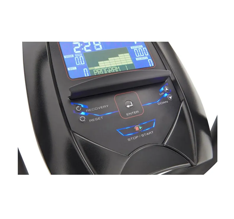 Pendant votre entraînement, vous pouvez surveiller vos données pour améliorer vos performances : elles s’affichent facilement et clairement sur l’écran LCD de 5,5 pouces. Vous pouvez également surveiller votre fréquence cardiaque à tout moment grâce aux capteurs de pouls intégrés au guidon fixe.